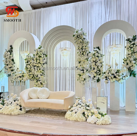 خلفية خلفية خلفية خلفية بيضاء لحفلات الزفاف على خشبة المسرح ، خلفية جدارية قوس أكريليك لحفلات الزفاف