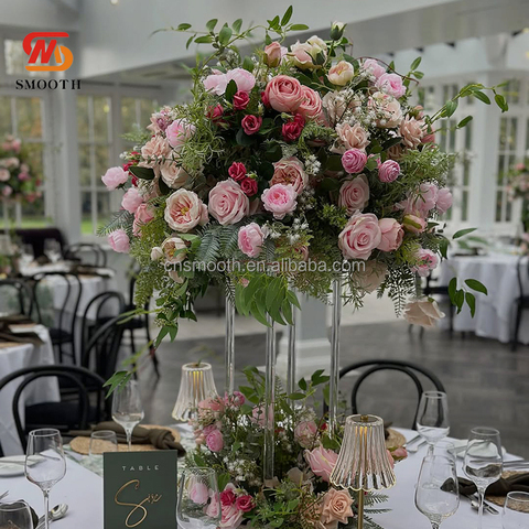 ลูกบอลดอกไม้ประดิษฐ์สัมผัสของจริงตกแต่งโต๊ะจัดงานแต่งงานขนาดใหญ่ปรับแต่งได้